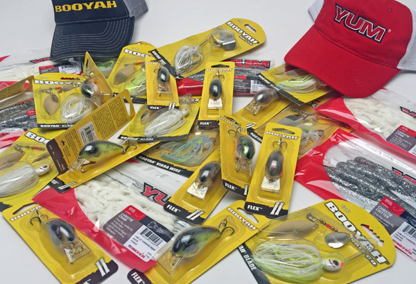 Daaaaaaaaaaaaaang son! Lookit that pile o’ baits! Bunch o’ juice right there, Bassmaster Elite pro Jason Christie’s favorite YUM and BOOYAH baits for catching fall bass — including, of course, the new BOOYAH Flex squarebill and spinnerbaits, plus the all-important “tin foil” color of YUM Christie Critter…and more!