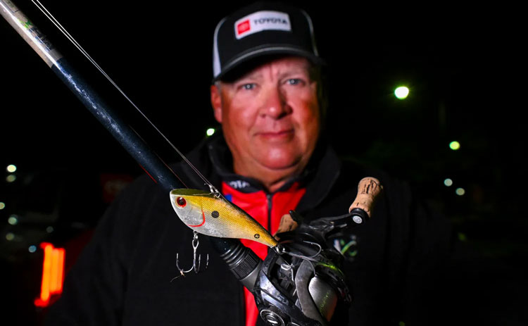 > "In dirty, cold water, which is what we had to deal with at the Harris Chain, [the A-rig] is kinda a no-brainer thing. ...they can't pass it up, at least following it or showing interest. For cold, dirty-water largemouth I don't think there's anything as powerful...."