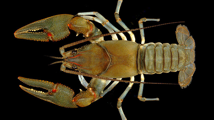 ...to protect 2 rare species of crayfish. Here's what one of 'em looks like – which makes me think we need a color that's green pumpkin with red and blue flake: