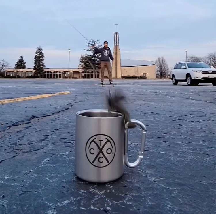 How many peeps do you know who can ride a skateboard let alone flip a jig into a cup while ridin' one? Check Ryan "Jiffy Pop" Whitacre of TightRope Jigs doin' it – and the cup barely moves! 🤯 Click the pic to watch it: