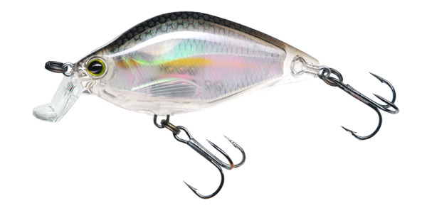 Sounds kinda nasty but…. Hahaha! Okay not exactly — what I mean is, Yo-Zuri has different baits in different sizes than you have in your box. Which means a different look and vibration/sound for the fishes. This-here’s a shallow-running, deflection-oriented crank — the 3DR Flat Crank in “real gizzard shad:”