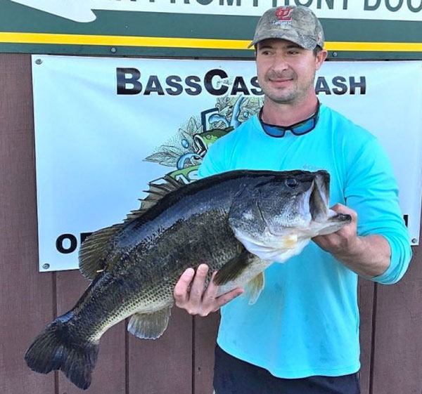 Kacy Fisher with 14.16 sagging LBs o’ water-filled meloniusness. Yet another one caught there C-rigged with a Zoom Baby Brush Hog (waterMELON red):