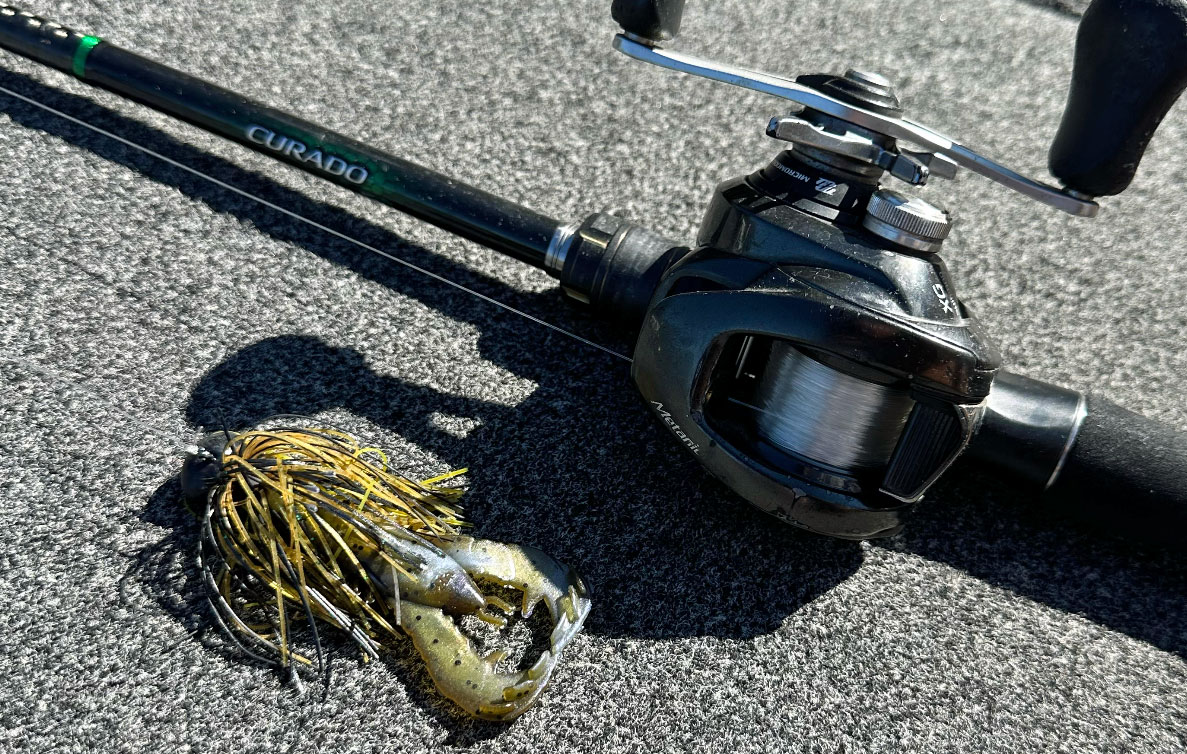 > "My rod was a 7' 5 H Shimano Curado, and I was throwing my Aaron Martens [custom tuned] Shimano Metanium that he gave me – that I caught 'em at LaCrosse on, that reel. That drag is so good I don't have to worry about it ever slipping. ...perfect drag [is] super key when you're reeling in fish over 6 lbs – because a lot of times when you set the hook, that fish is gonna do what he wants to do. I don't have to worry about that fish locking the drag up...."